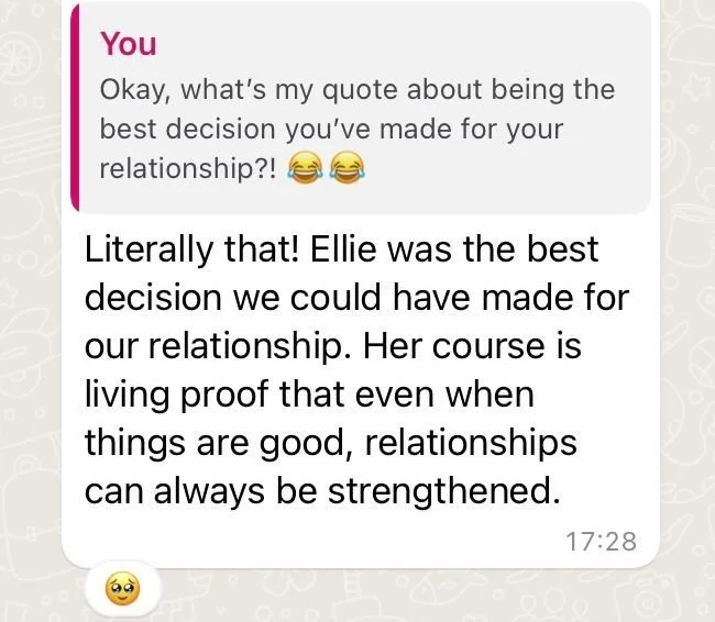 They also perfectly fit the description of the kind of couples I support. Ones in a rut, with some niggles or going through life transitions. We’ve addressed them all!